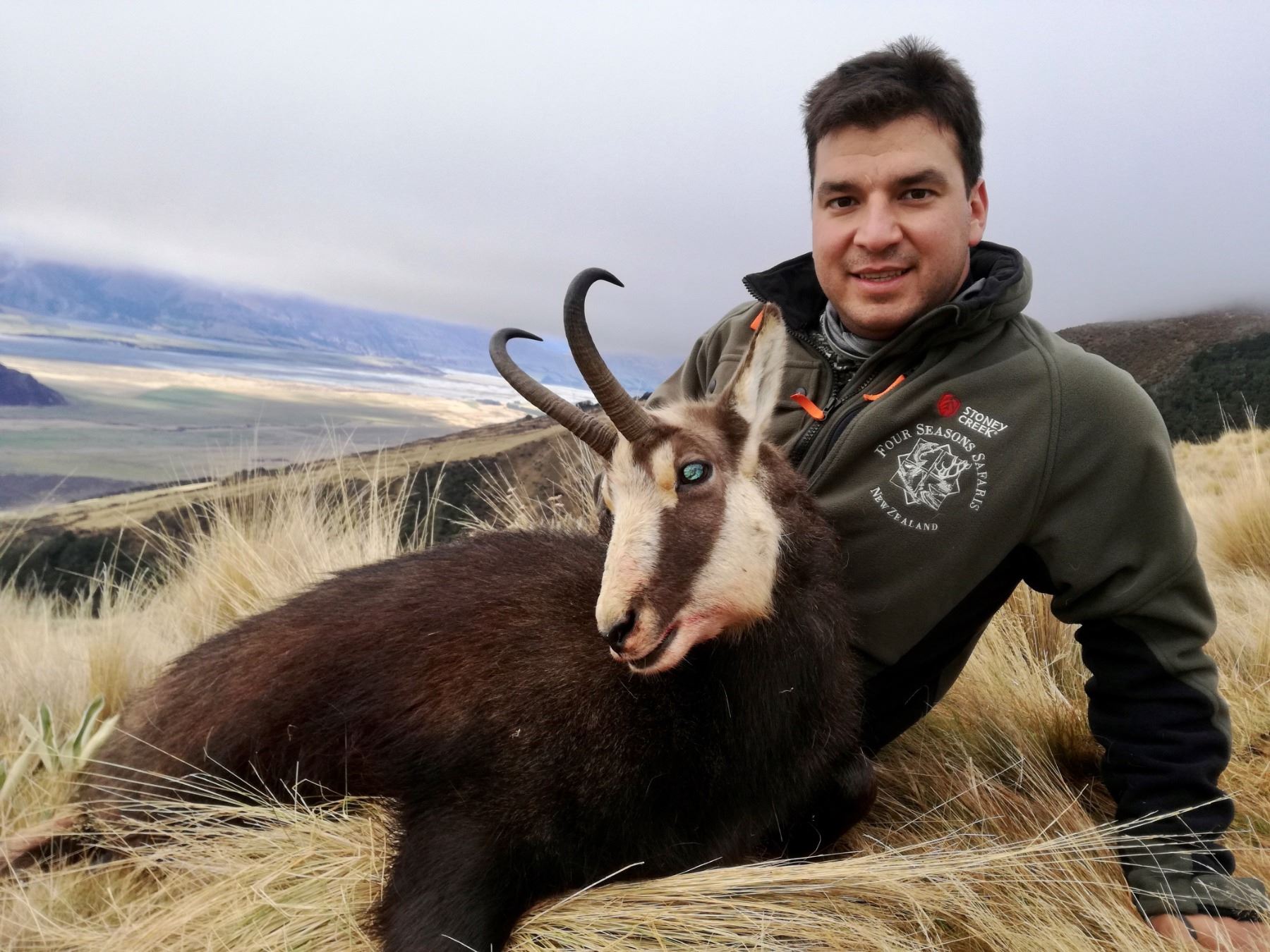 Imagine the fall or winter in the Southern Alps of New Zealand, snow on the jagged peaks, and you are hunting your dream alpine animals of the South Pacific, the tahr and chamois. Four hunters are invited to join Shane Johnston of Four Seasons Safaris New Zealand on this 5 day, 2x1 guided hunt for tahr and chamois. In addition, each hunter is allocated $1,000 towards the fee of a trophy red stag. Schedule this rifle hunt with outfitter for open dates April-July 2020, only. No alternate dates are available. Shane Johnston, your outfitter/guide of over 20 years, is an SCI Life Member, recipient of the Nebraska Chapter 2010 Outfitter of the Year award, Dallas Safari Club's 2007 Outfitter of the Year award and Houston Safari Club's 2013 Professional Hunter of the Year. Be assured you are in the hands of one of the finest professionals in the industry. Access to the high alpine areas where tahr and chamois inhabit is with the use of our large turbine helicopter, which is an exhilarating experience for all involved. Experience the breathtaking scenery of the Southern Alps while hunting the majestic bull tahr and the agile chamois in the most stunning alpine country. You will have the privilege of hunting with Four Seasons’ team of experienced, professional and enthusiastic mountain guides dedicated to hunting your animals of choice. Included are accommodations for 4 nights in the heart of the hunt concessions in the alps, in a rustic mountain cabin for tahr, spike camp for chamois, and if you choose to foot hunt the alps for both species, a high degree of fitness is required. Alternatively, you can upgrade to stay at the resort if you choose to do an aerial assist trophy hunt. Meals, transportation from Christchurch, 2x1 guide service, field prep of trophies, the trophy fee for a bull tahr for two hunters and the trophy fee for two chamois for two hunters with a further $1,000 per hunter to put towards the fees of a red stag are included. The stag hunting will take place on Four Seasons' very own exclusive private estate with an abundance of world class stags in a setting that most would only dream of. Four Seasons Safaris specializes in trophy hunting for all of New Zealand's big game animals as well as offering fishing for trout, ocean fishing, helicopter safaris, scenic tours, pamper-me spa days, golf, horse treks, whale watching, swimming with dolphins, scuba diving, scenic train excursions, shopping and so much more. Hunt can be upgraded to include additional hunters and non-hunters as well as additional species. Additional days can be booked as well as many activities and adventures for the entire family. For the experience of a lifetime - guaranteed! This fully donated hunt is not to be taken in conjunction with any other NZ hunt, or a hunt currently booked with Four Seasons Safaris. Not included are before/after hunt expenses, firearm permits (NZ $25 at airport), helicopter access to the alps for tahr and chamois hunts, which is required at approximately $2,500+ per hunter, high country resort accommodations are $450 per room night, with our award winning gourmet chef, which is where hunters will stay for aerial assist trophy hunting the tahr and chamois, taxidermy/expediting, export fees and gratuities. Arrival/departure point is Christchurch, South Island, New Zealand.