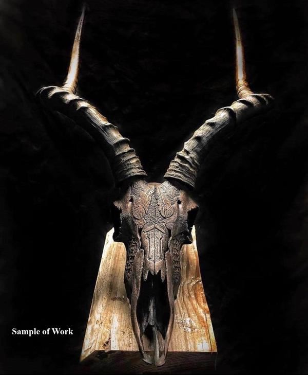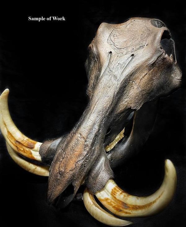 Skulls Millworks will help design and carve any skull provided by the winning bidder. Consider the skull a blank canvas as he sketchs a design and carves into the skull. The winner can also have the skull painted like the pictures provided. The skull can be whatever the winner decides to ship -- hog, deer -- Skulls Millworks will help design and carve any skull provided by the winning bidder. Bidder pays for shipping of skull to and from Skulls Millworks. For more information, contact Will Rawlins by email at skull.millworks@gmail.com or by phone at 404-769-0966.