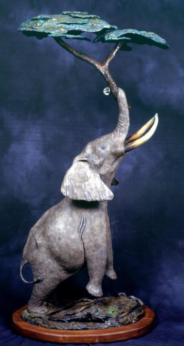 Smith Galleries has donated an Elephant Lamp Sculpture titled 'Elephant Lamp' by sculptor Christopher Smith. This beautiful sculpture, measuring 63-in. x 33-in. x 18-in. and weighing 90-lbs., is of a bull elephant reaching up to an Acacia tree that is actually a floor lamp. Its presence is huge -it belongs in a special trophy room honoring the African giants. The patina is traditional and realistic. Only four of these beauties ever made. For more information, contact Christopher W. Smith at smithbronze@aol.com and visit www.christophersmithgalleries.com.