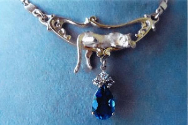 Paul Iwanaga/Fine Arts has donated a striking Leopard Necklace with colored gemstone and diamonds. The Leopard is sculpted on a diamond-accented setting above the gemstone. Overall height is 2-in. Paul Iwanaga has spent a lifetime enjoying nature and wildlife, and his love for animals shows through in every original piece he crafts. With over 25 years as a goldsmith, Paul is one of the most sought-after custom wildlife jewelry artists in the Northwest. Paul came to Oregon from Hawaii in 1962 to pursue a BS in wildlife management, and later completed an MS in fishery science. While working in the fisheries, he spent his summers in Alaska hunting, fishing, painting and making jewelry. His talent is in the traditional hand carved 'lost wax process,' a style that takes incredible skill, patience and natural ability. For more information, contact Paul Iwanaga at 541-752-2509.