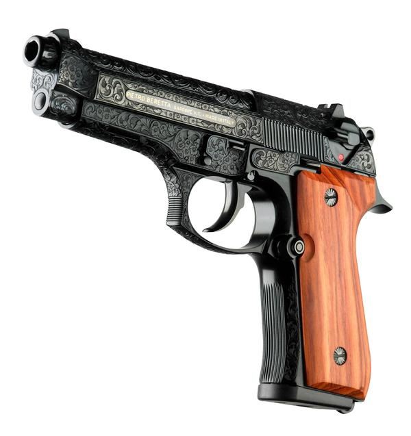 This extremely Limited-Edition Beretta 92FS pistol is one of only six pistols that elevates this storied pistol line’s superb functional characteristics into an elegant piece of highly, hand-crafted art. This specific pistol features a one-of-a-kind floral bas-relief, hand engraved barrel, slide, and frame complete with unique custom Kingwood grips.