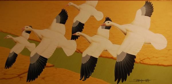 D. Nicholson Miller Wildlife Art has donated an Original Acrylic Painting. 'Banking to the Left' features the lesser snow geese (white phase) which nests in the arctic tundra and migrates down the pacific flyway where Don sees them each year in a game preserve not far from his home. They are the most vocal of all of the waterfowl and 10,000 of them flushing is an incredible sight and sound. The painting is 12-in. by 24-in. and framed in a burlwood walnut frame. For more information, contact D. Nicholson Miller at 707-725-4349 and visit www.dnicholsonmiller.com.