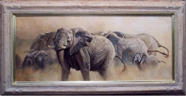 Grant Hacking marks his return to SCI after a 12 year absence with his donation of an Original Oil on Canvas. Grant is a previous SCI exhibitor with his art having been on the cover of Safari Magazine four separate times. New England artist Grant Hacking was born and raised in South Africa and resided there until the age of twenty-five so he still experiences great pleasure in depicting the diverse animal life native to the African Continent. Living in this exotic location provided Hacking the opportunity to travel far and wide during the early years of his career researching material for his innovative wildlife compositions. This painting is a depiction of an African bush scene titled 'Matriarch.' It measures 18-in. by 43-in. For more information, contact Grant V Hacking 603-356-6944 and visit www.granthacking.com.
