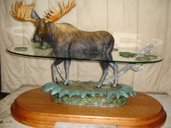 Karl Lansing Studio-Wilderness Images has donated a unique Sculpture/Coffee Table, 'Swamp Salad,' created by award winning artist Karl Lansing. This unique coffee table, valued at $16,000.00, is created by giving a feeling of water surface through placement of the glass. Moose are often referred to as swamp donkeys. This piece depicts a moose in that natural habitat enjoying a meal of lily pads. It also comes with a set of 4 lily pad coasters. Karl has captured the detail of the great moose in the beautifully designed piece. The table is accompanied by an Original Oil Painting, also titled 'Swamp Salad,' created by renowned wildlife artist Brent R. Todd, valued at $15,000.00. The painting depicts northern moose in their natural habitat. Karl Lansing was raised in the majestic Northern Rockies of his native British Columbia. Since the age of 11, Karl has been a taxidermist and involved in the outfitting and guide business. He truly knows his subjects inside and out. This limited edition piece, along with the painting would make a great addition to your home or office. Karl's signature detail and anatomical correctness is evident. For more information, contact Louise Lansing at 250-428-8614 and visit www.karllansing.com.