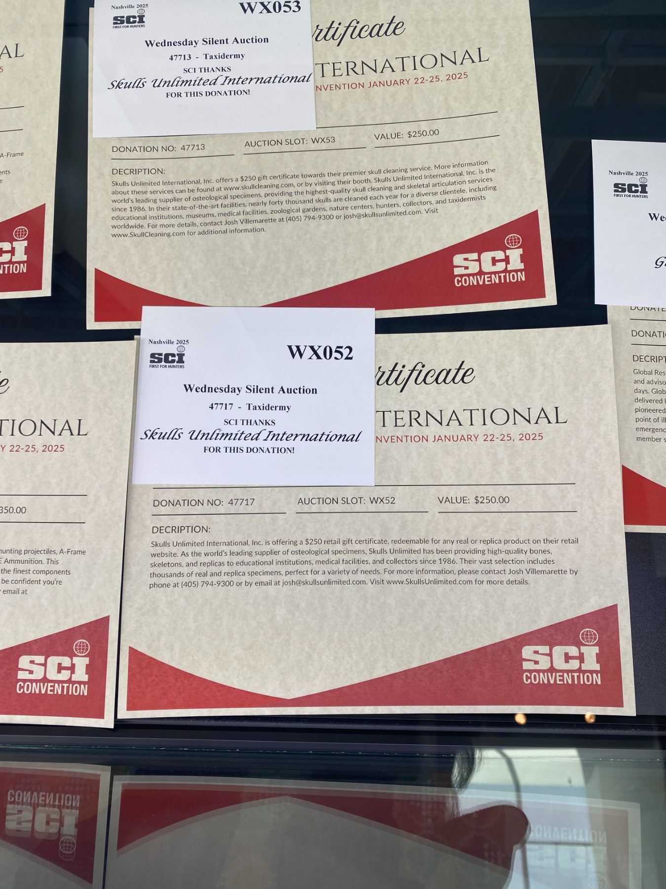3. All auctions are final and there will be no exchanges or refunds on items or hunts. SCI has made every effort to ensure the quality of donated items or hunts. However, SCI does not guarantee the satisfaction of the donor or the purchaser in any case. In reference to hunt donations, it is the purchaser’s responsibility to contact the hunt donor immediately and make all necessary arrangements for hunt dates and the application for any necessary paperwork for licenses and /or permits. Failure to make necessary arrangements may constitute forfeiture.