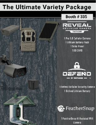Tactacam has donated the Ultimate Variety Package, a diverse collection of cutting-edge outdoor monitoring and security solutions. This comprehensive package showcases Tactacam’s range of innovative products, including the Reveal Pro 3.0 Cellular Camera for advanced wildlife tracking, complete with a Reveal Lithium Cartridge, Solar Panel, and SD Card for extended, self-sufficient operation. The package also features the Defend Cellular Security Camera with a Defend Lithium Battery Cartridge, offering robust outdoor security. As a unique addition, an AI Assisted and WiFi powered Bird Feeder Camera, the Scout by FeatherSnap, is also included, bringing intelligent bird watching and backyard wildlife monitoring capabilities to the mix. This varied assortment caters to a wide range of outdoor enthusiasts, from hunters and wildlife photographers to property owners and bird watchers, demonstrating Tactacam’s versatility in outdoor technology solutions. For more information about this package or other Tactacam products, please contact Mersadie Gibson at mgibson@tactacam.como or visit www.tactacam.com and feathersnapcam.com